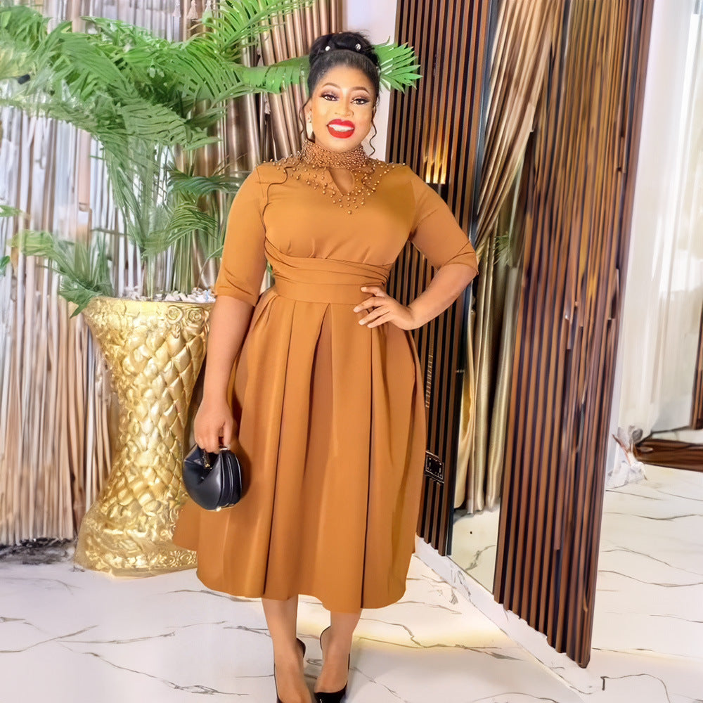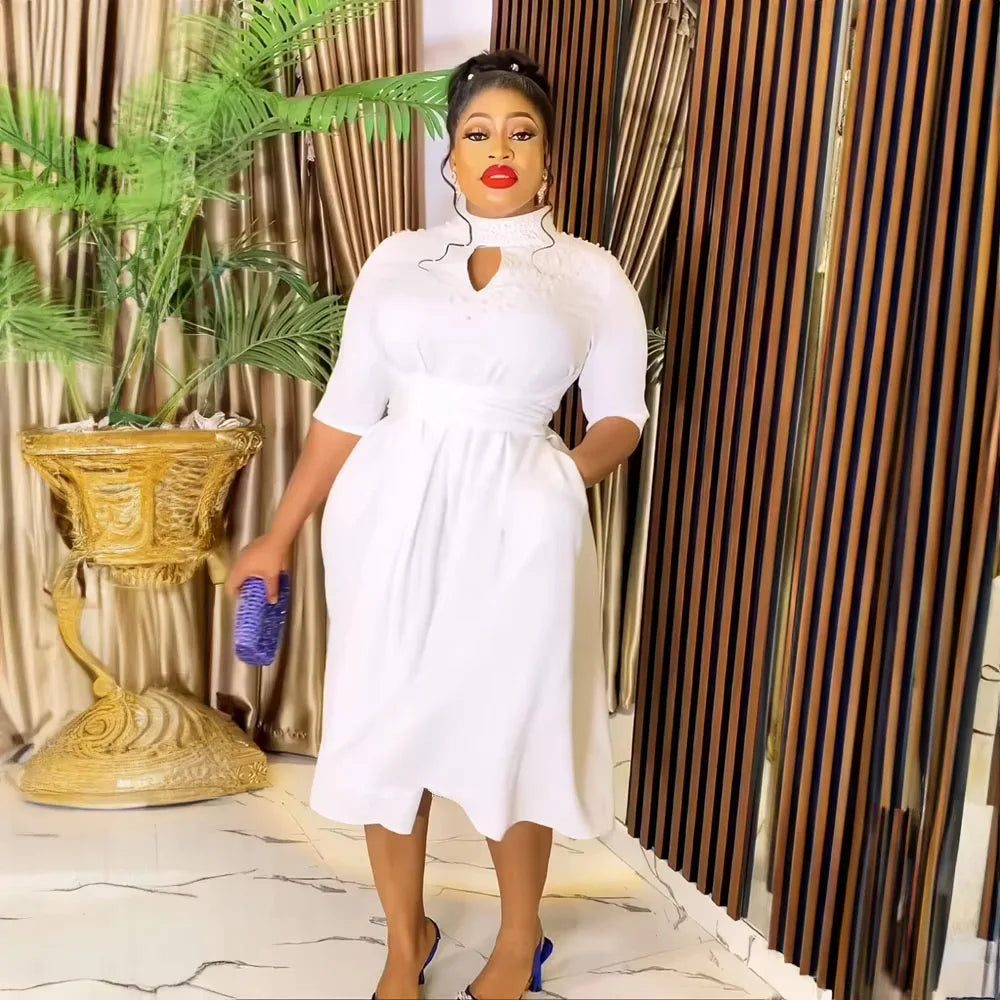African Party Evening Dresses for Women Elegant 2024 Spring African Half Sleeve Solid Color Midi Dress Dashiki Africa Clothing
