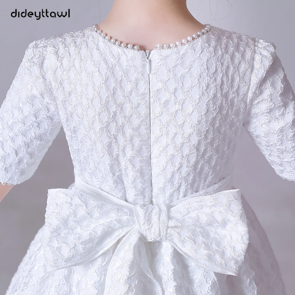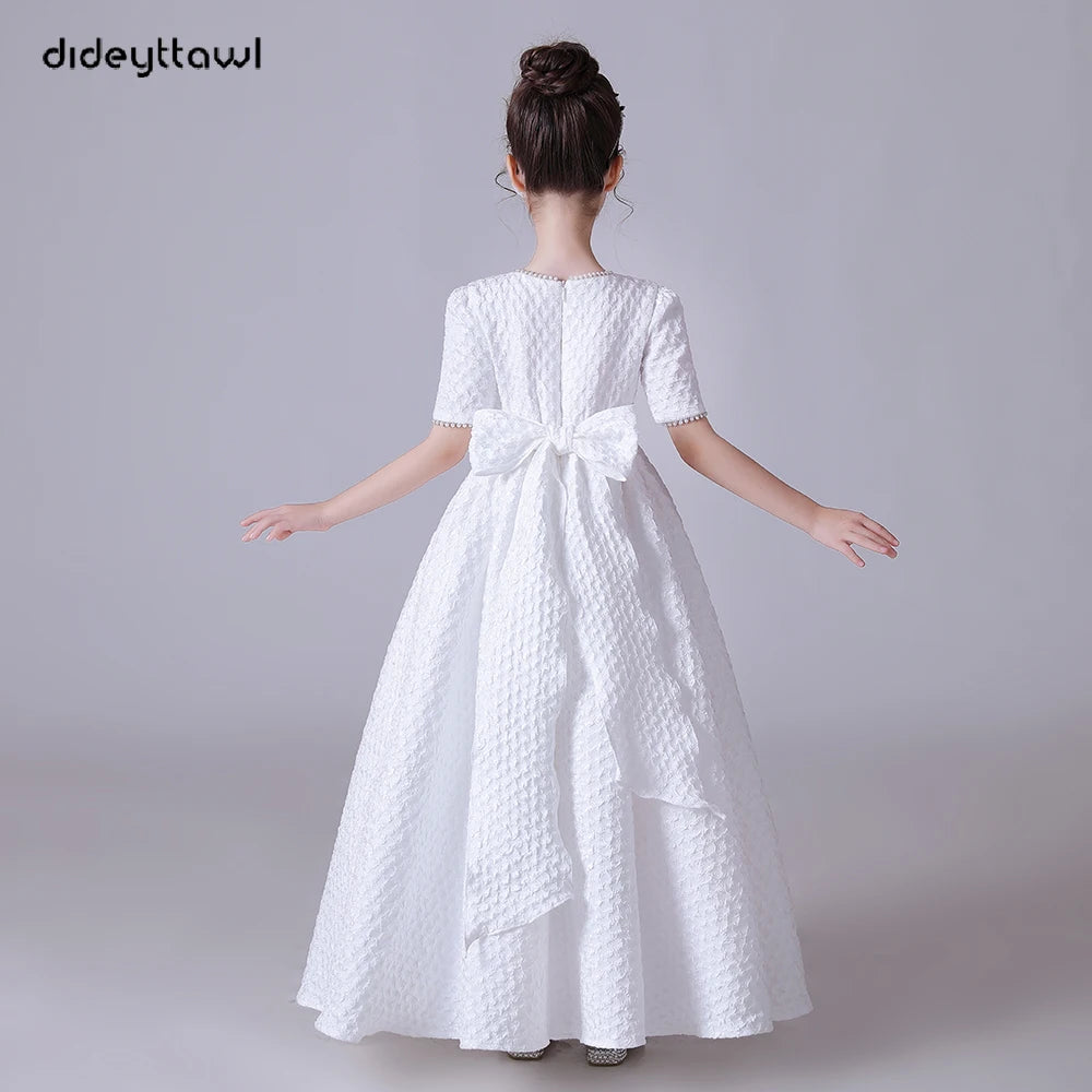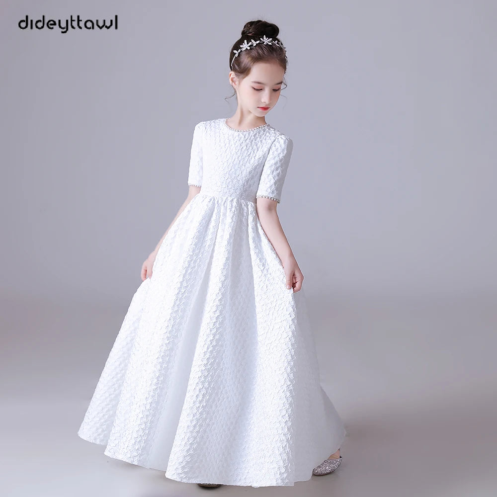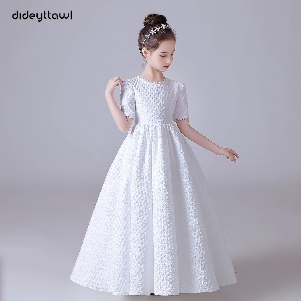 Dideyttawl Customized White Puff Skirt Elegant Flower Girls Dress For Wedding Party Short Sleeves Concert Junior Bridesmaid Gown